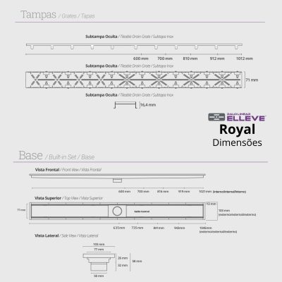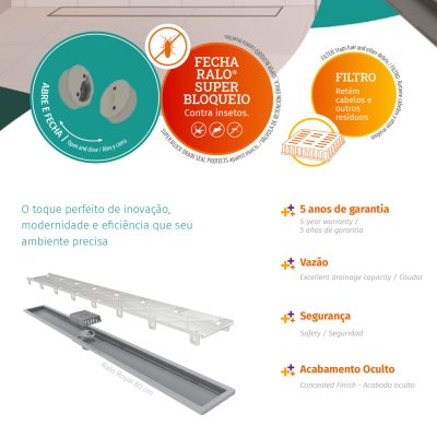 Ralo Linear Elleve Royal com Tampa Oculta – Luxo 80cm
