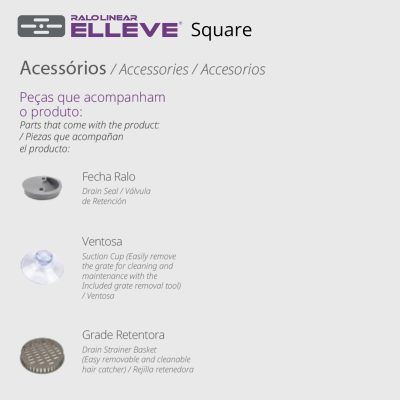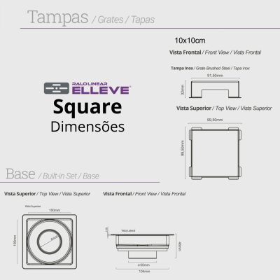 Ralo Linear Elleve Square com Tampa Inox – Luxo 10X10cm