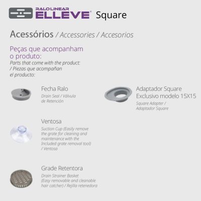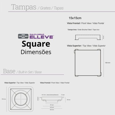 Ralo Linear Elleve Square com Tampa Inox – Luxo 15X15cm