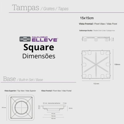 Ralo Linear Elleve Square com Tampa Oculta – Luxo 15X15cm