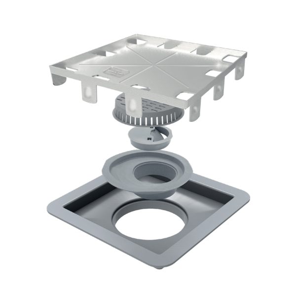 ✓ Base com altura reduzida que evita cortes na laje durante instalação