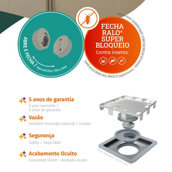 ✓ Base com abas de segurança que evitam infiltrações e vazamentos