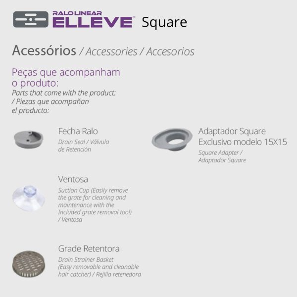 Ralo Linear Elleve Square com Tampa Oculta – Luxo 15X15cm